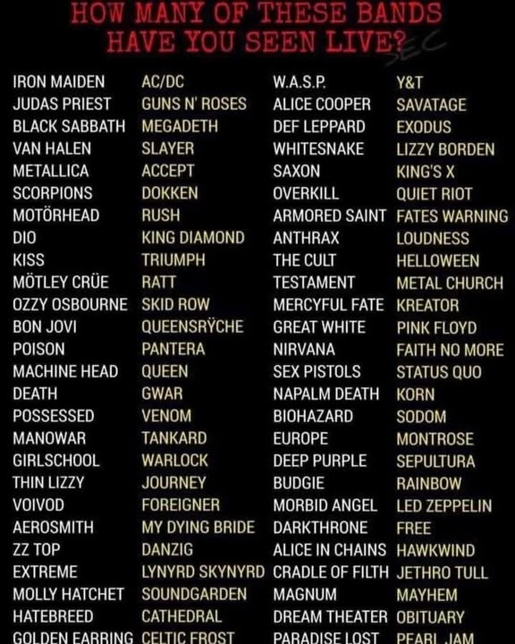18, some like Metallica & Megadeth several times. Helps explain my need of hearing aids now.