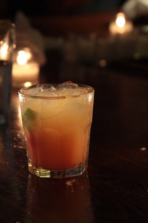 Apple cider and spice infused bourbon with ginger ale.
