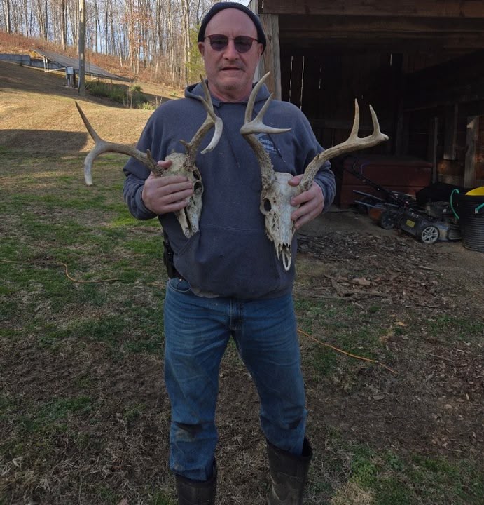 I started to cut back portions and taking long walks up and down hills in my forest to survey the land. It is easier to do so with all the leaves off the trees and the winter snows melted off. I found these two buck sculls the I will display some where. The one on the left I believe I shot with a bow and could not find so it was a sweet find/recovery for me. The right one was an older buck.