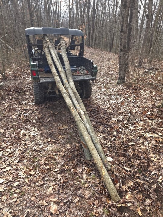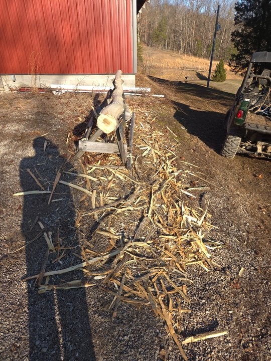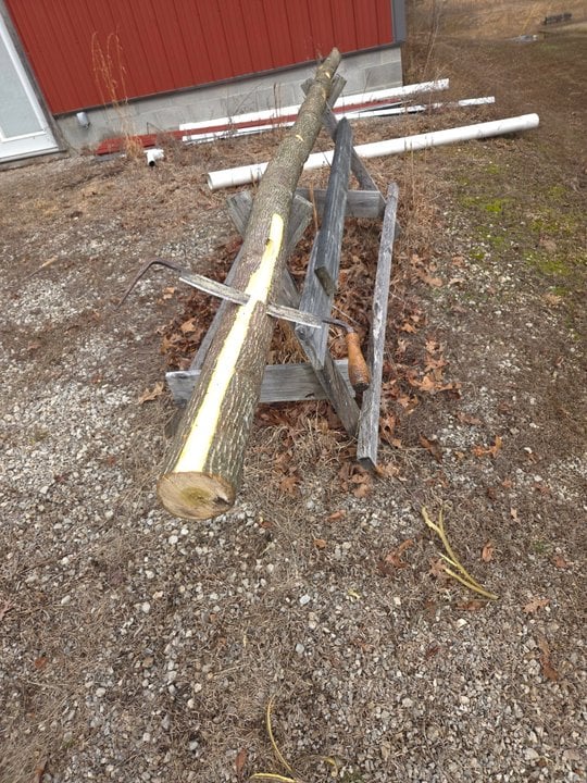 today's exercise was going up and cutting down two young poplar trees to bring down hill to the new home O have been slowly building to debark and put in side the house to cure for a year before I can use them as railings and to build furniture with. I need to fell and debark four more for sure. Using an 1800's draw knife with wear some fat off of this 60 year old for sure, Good buy to my Thanksgiving and Christmas fat stores.