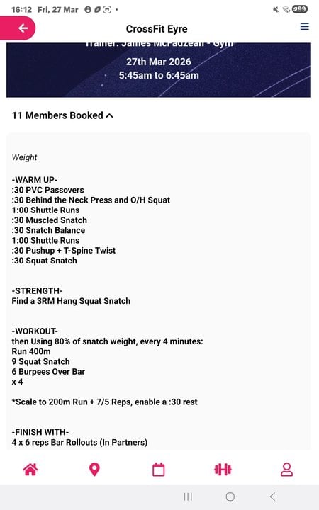Pretty standard except that "3RM Hang Squat Snatch".