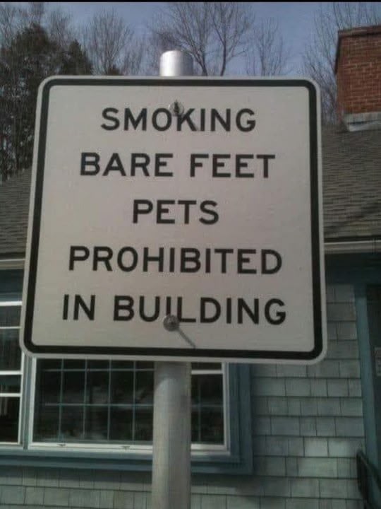 it says that smoking barefooted pets is prohibited