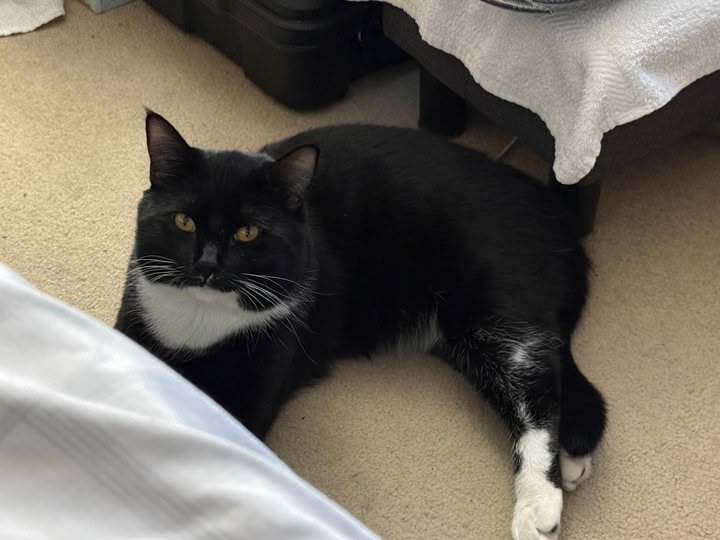 We love him and he’s got a forever home with my boyfriend and I. I love that he he gets along with my other cat.