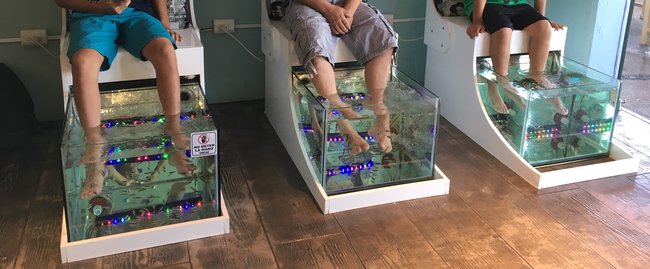 So we walked in set up for the 4 of us, the lady washed our feet and walked us over to the chair and tank. Cleaned our feet again and then we dropped our feet into the tanks.