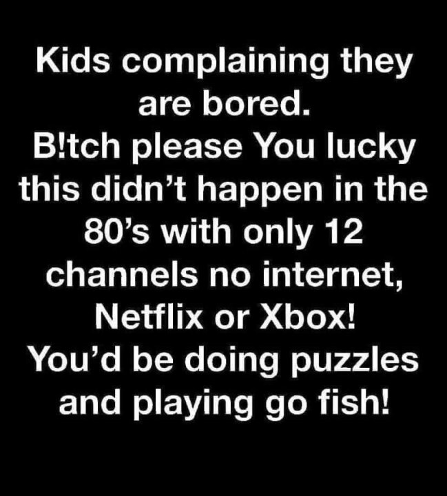 During the 80s, kids did have Atari and Nintendo but technology was still limited back then. Tell your kids to go outside and ride their bikes for a while.