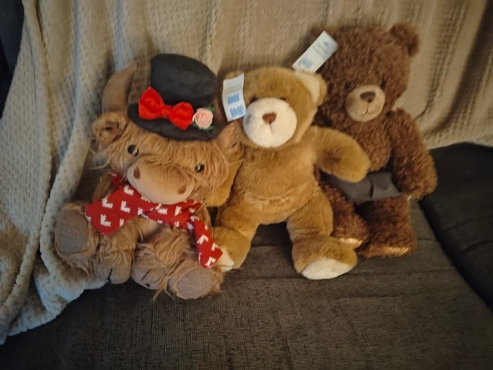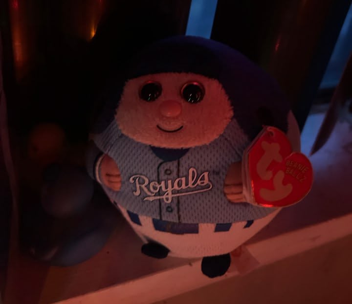 So looks like Joel and Sissy go pretty lucky today a the thrift store she got the last cow at Menards she needed and found 2 build a bears and a cute Royals toy
