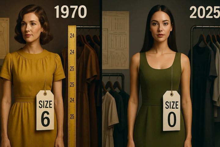 That perfect-fitting dress you’re wearing might be labeled a size 4, but had you shopped in 1970, you’d be slipping into a size 10.