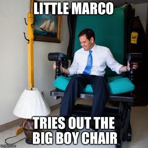 See https://www.thedailybeast.com/little-marco-mocked-for-wearing-clown-shoes-in-trump-suck-up/
