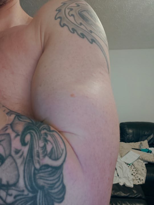 My biceps have gotten bigger and wider along with my triceps, can't really see in this lighting.
