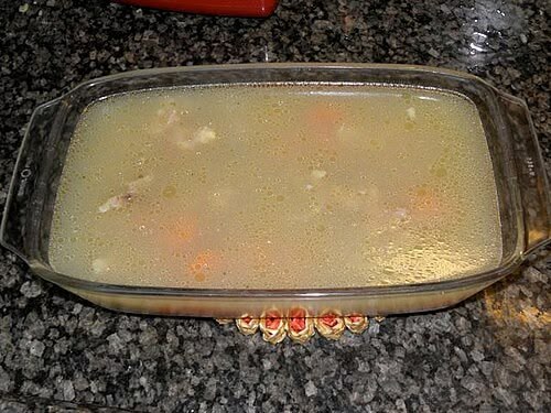 Then chilled the whole mess, and after it was cold it had turned into jelly. Chickens, pork, and some cuts of beef make jelly when cooked with water. I picked out ALL the bones, and I was left with quite a bit of meat and the jelly...which I threw away...🤣🤣🤣