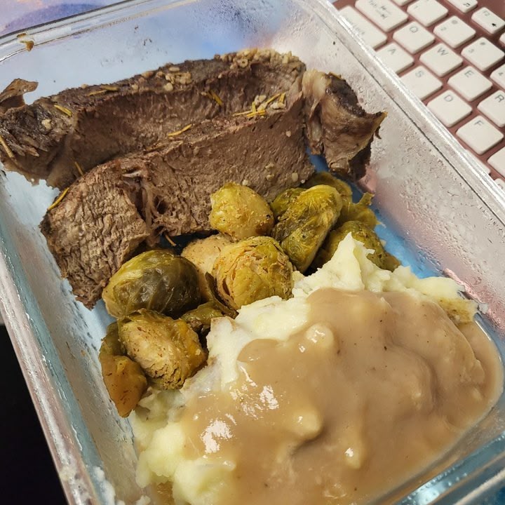 That looks delicious, especially those mashed potatoes and gravy. For some reason, but so do love brussels sprouts