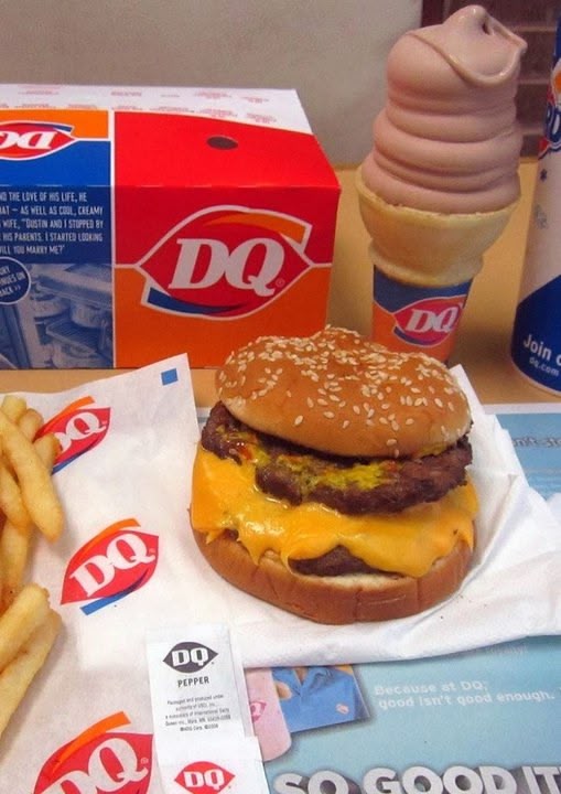 I like to get the blizzard. We ordered hamburgers at one out in the middle or nowhere because it was the only place to eat that was open. Other wise ice cream only for me at DQ.