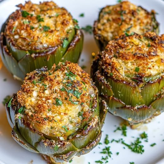 I have a friend who is half Italian, and he taught me how to prepare artichokes. He doesn't do them baked or stuffed with cheese. He does them with minced garlic and oil drizzled inside every leaf after boiling for 1 hour.