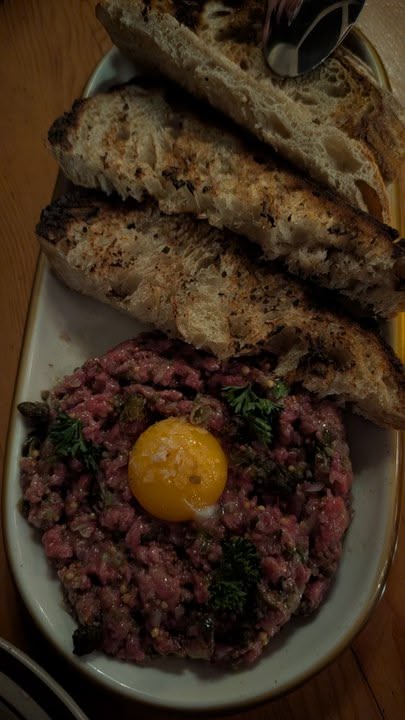 So brave for trying steak tartare with the raw egg 😭 . The drink looks lovely, what is it?