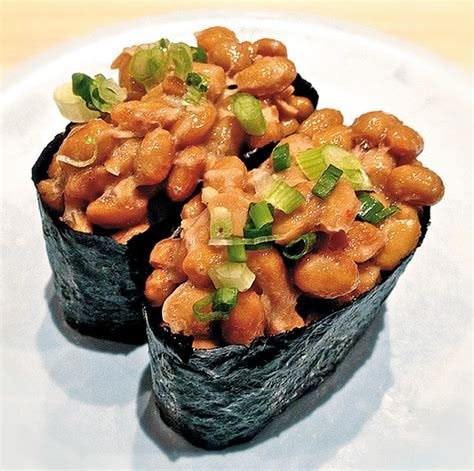 I love natto, especially nigiri-style. It’s fermented soybeans. Pop got into the habit of eating it when he was stationed in Japan. When I was small and he’d go to JapanTown to get soy milk for me (lactose intolerant) he’d get natto if they had it. Mom used to ask him to eat it in the basement, so one day, curious, I talked him into letting me taste it—and to his surprise, I liked it. My siblings can’t even stand the way it smells.