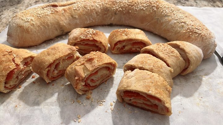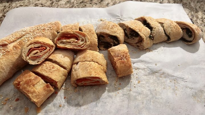 I’ll be having spinach Stromboli’s with extra sharp provolone and a bit of hot habanero cheese. The others are pepperoni, but I don’t meat. Made them last night.