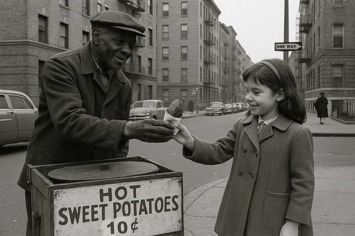 Sweet potato carts are not common in the U.S. nowadays. But, by a strange coincidence, I came across this photo online today. I think it is AI, but it is set in New York City, in what appears to be the 1940's judging by the looks of the automobiles. People older than I am remember these kinds of carts in New York.