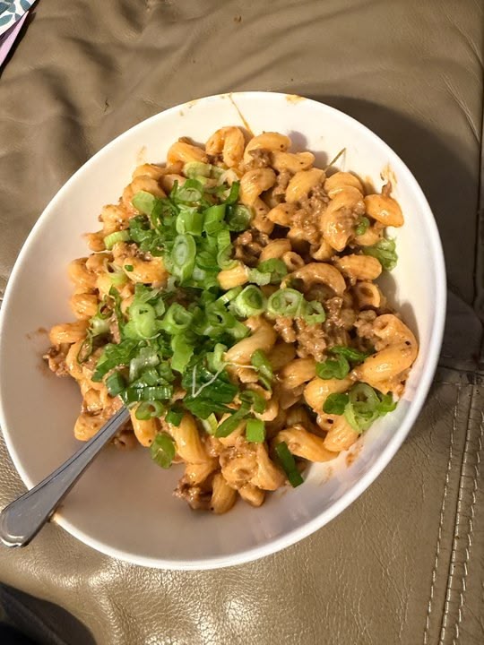 Time for fat people stuff tonight Taco beef and a mix of sour and table cream with corkscrews covered in shredded cheese and chopped scallions Ill post the recipe if yall want but omg it is delicious and simple Post Comment Receive notifications Add a comment...