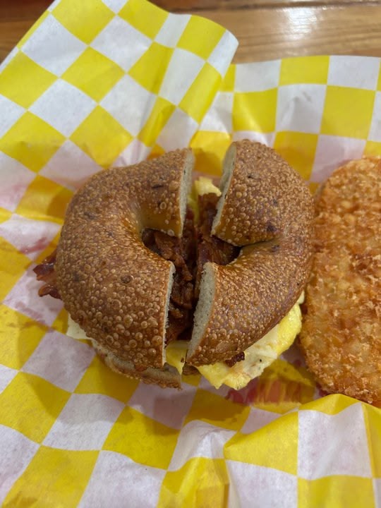 A cinnamon raisin bagel sandwich from Galveston 😀