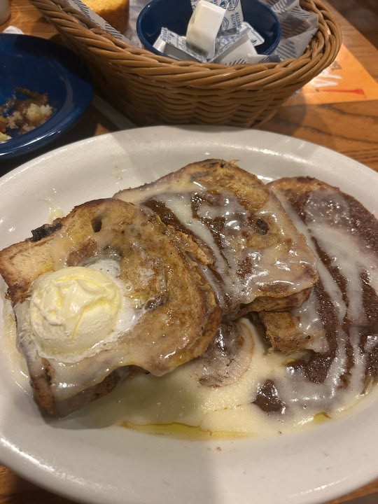 I traveled for years breakfast at Cracker Barrel could mean any meal!!