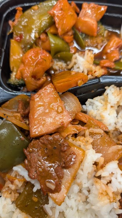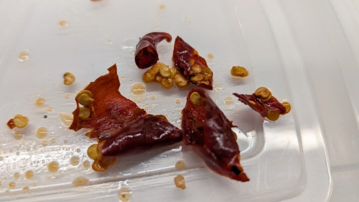 Food looks delicious, but I'd never eat the red peppers. Way too hot for me.