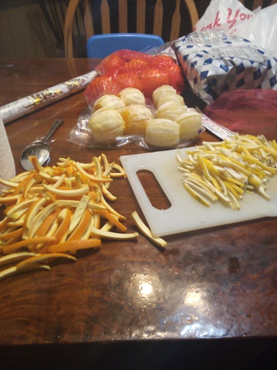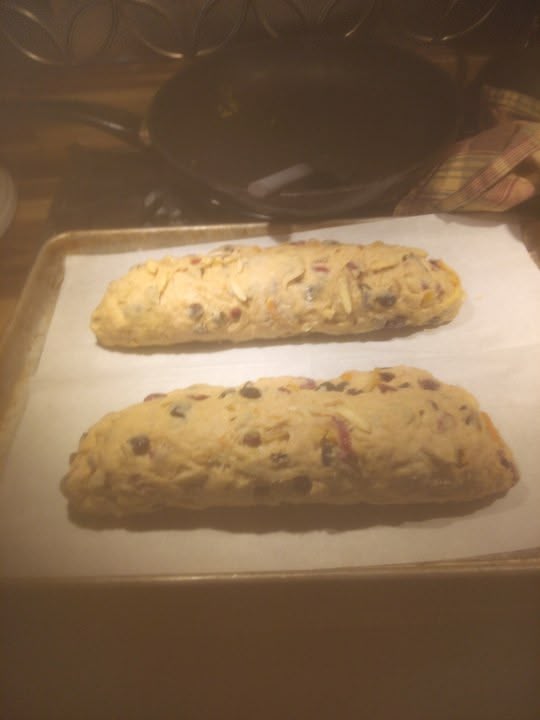 Lemon and orange peels turned to candy. Raisins and cranberries soaked in rum. Almonds blanched. Marzipan made. Dough made risen twice. Working all that crap in was a bench. Cooked And buttered and dusted with powdered sugar.