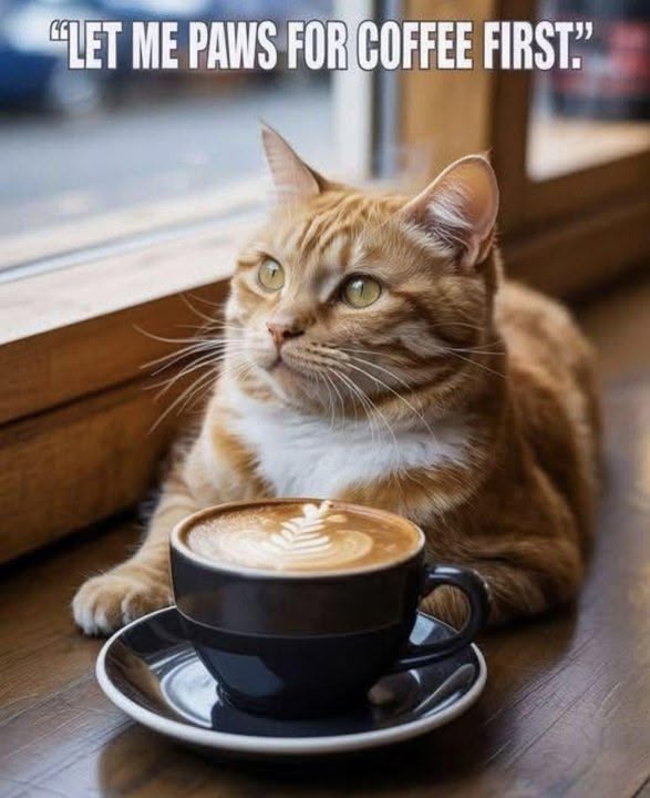 Coffee + a paws in the morning before the activity explosion + a fur-buddy = purr-fection.