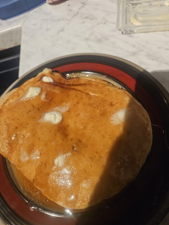 I made pancakes - apples pureed and used instead of an egg for the batter and of course, Maple syrup. Delicious! I don't often make pancakes, and when I do, I make half a recipe and then make just two large pancakes. One for immediate consumption and one I put in the fridge for tomorrow's breakfast.