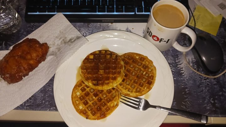 Three waffles and an apple fritter??? Oh my gosh! 😮 The diabetes nurse will be right over to administer your whipping.