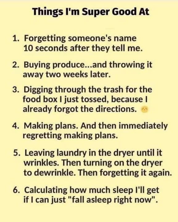 I have never forgotten the laundry twice, but I have done the rest. 🙂
