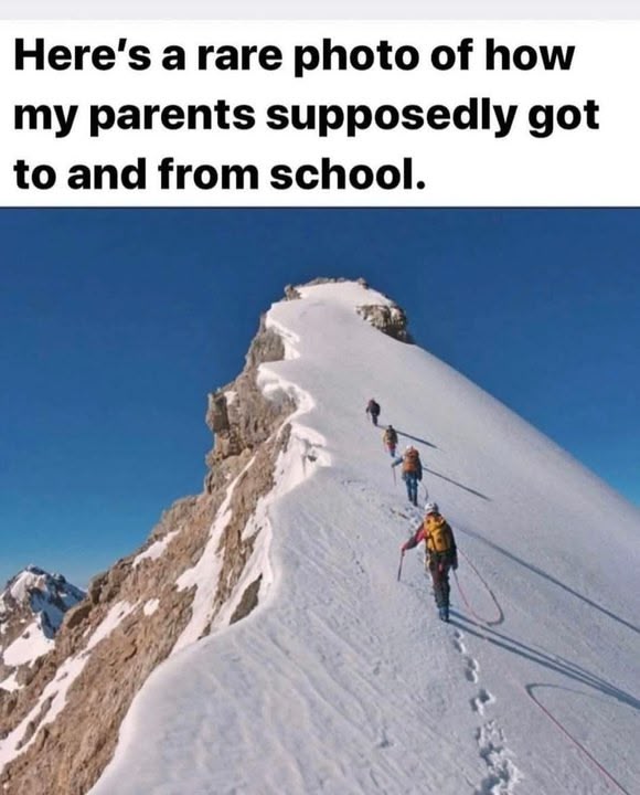 My dad told me he walked miles in snow, uphill both ways. I believed him until I was a teenager when my mom told me he lived across the street from the school, and didn’t even have to cross the street, he walked through an alleyway