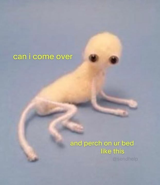 If I say yes, will you come over looking more like your profile pic and less like that mutated biped shrimp?