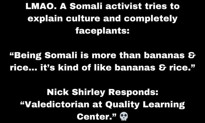 "Being Somali is more than bananas & rice, it's a lot, it's uh.. it's kind of like bananas & rice"