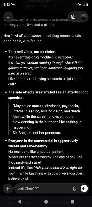 The first time I heard similar was a lawyer’s commercial. I’ll never forget it was a medication I was on off label. I was doing my nails and heard, “have you tried to commit suicide since taking..” I was like, what did they just say??