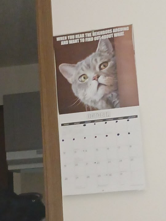 I stood up in the little kitchen and staring at the cat calendar, I felt as one of the Sims players, inhibiting a small house.