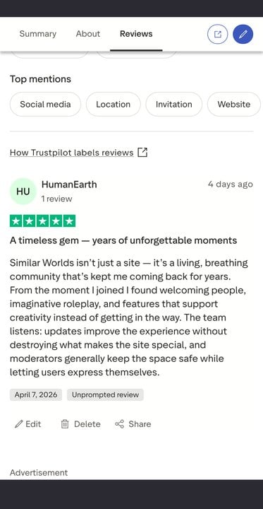 Trustpilot -> https://www.trustpilot.com/review/similarworlds.com