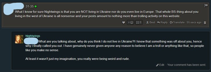 I don't speak Ukrainian, but I will speak to you in Danish and English lol. People need to just ask if they are so concerned about whether or not I live in Ukraine, rather than making strange remarks on my posts for the longest time. It becomes upsetting when it keeps going on for years. Let me write about my life in peace, and if you think something weird about me just fkng call me or something, I will show you Ukraine on cam, it's that's easy.