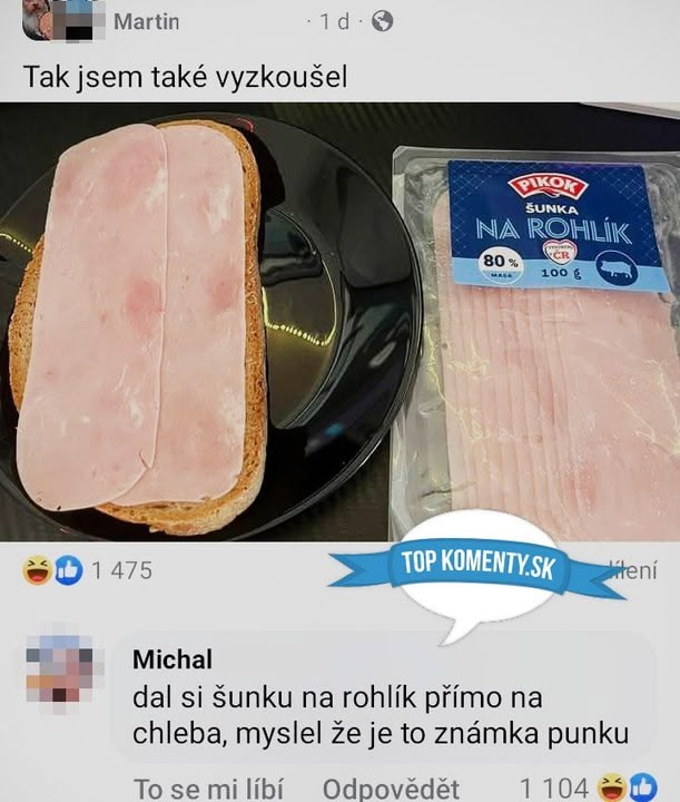 So the comment says: "He put ham for a hot dog bun straight on a slice of bread, he thought it was a mark of punk."