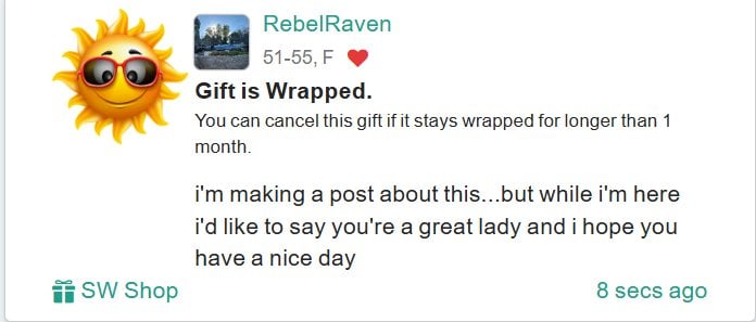 let's have some fun...shall we... pick a user at the top of your home page and give them a random gift and post about it here...i'll go first Post Comment Receive notifications Add a comment...