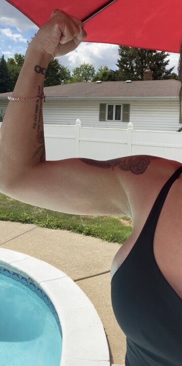 Just got back from the gym. Did some weightlifting, ran on the treadmill for an hour. I’m out laying by my pool now trying to relax. Showing off my gains so far.