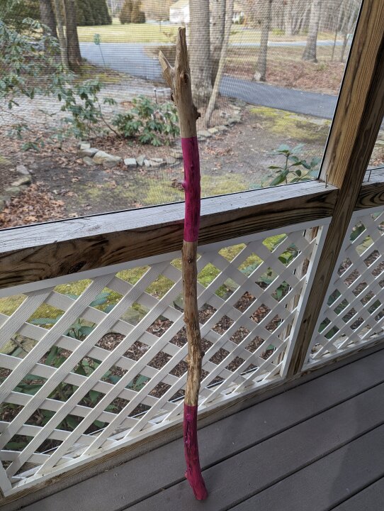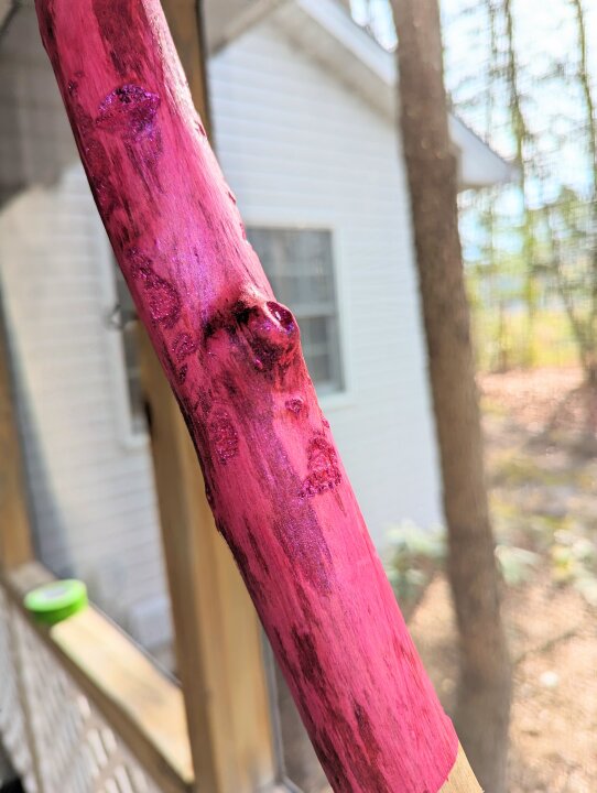Don't laugh but my latest hobby has been making walking sticks. My son wanted me to make him one with his favorite color, pink. I found this gel woodstain called unicorn spit and it is the coolest shit I've ever seen!