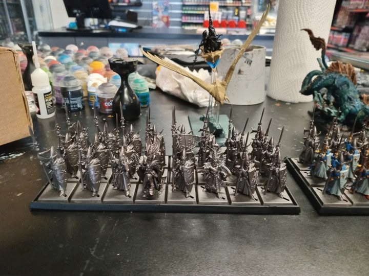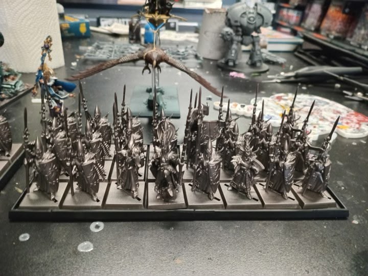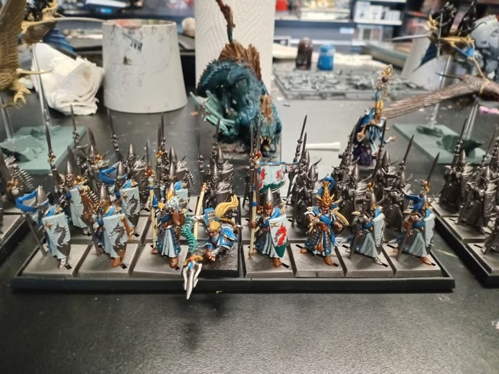 - 3x units of Lothern Sea Guard each with 23 models, shields, champion, standard, and musician