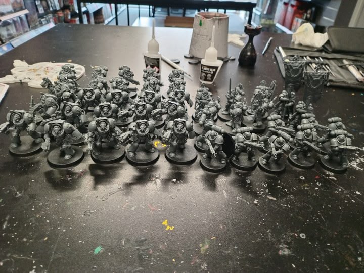I ended up with 4 Imperial Fists Combat Patrol boxes, and I've spent this week building them after giving away the contents of one of the boxes I bought. So far I've built 8 Company Veterans, 10 Intercessors, 10 Heavy Intercessors, and 12 of 15 Terminators. Hopefully I can finish them all off tomorrow.