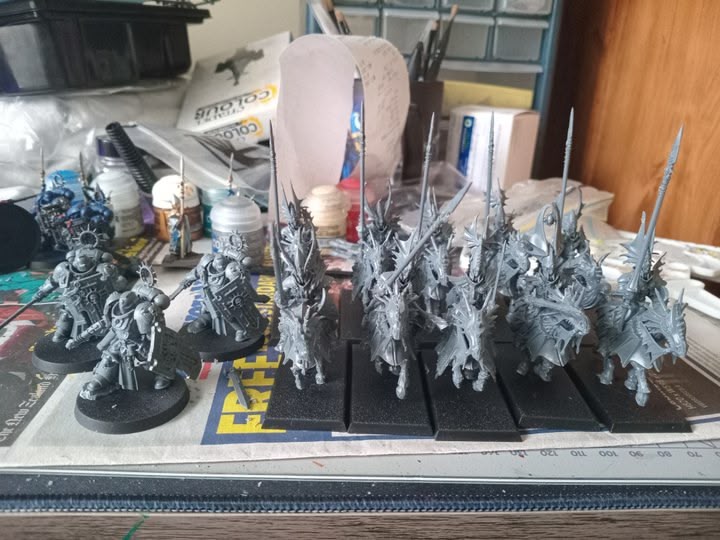 Built my christmas models 10 dragon princes subassembled (the bodies and the standard aren't glued on to make painting easier) and 3 Bladeguard Veterans (one is built as a Lieutenant). I got these from two of my friends. Post Comment Receive notifications Add a comment...