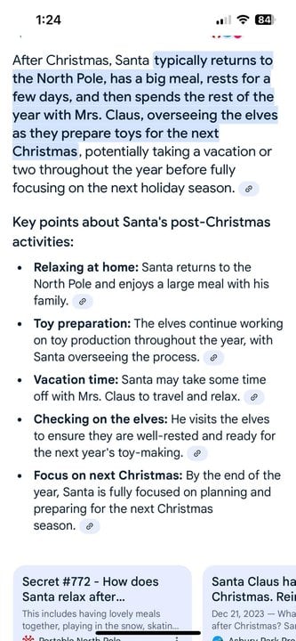 I found this on Google. I thought those of you with kids especially would enjoy this. It’s what Santa does after delivering gifts