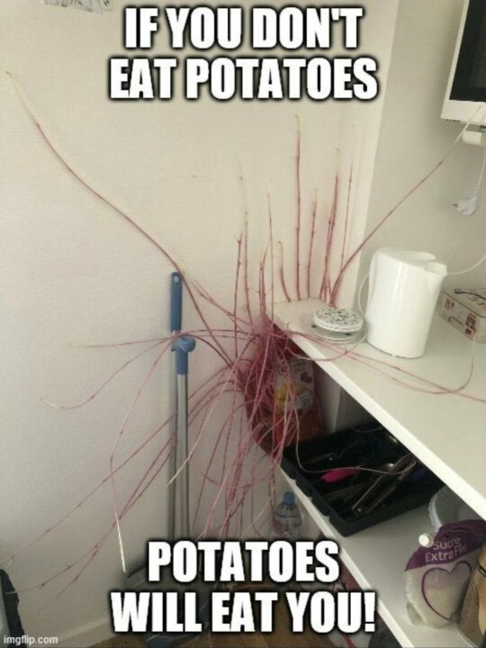Potatoes can become unfriendly and then you need to eat them!!Otherwise you’re 🤯💥