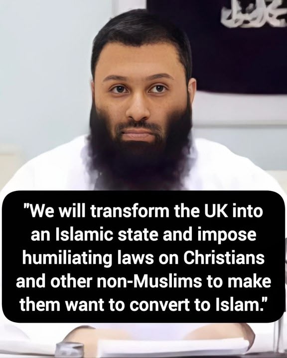 🚨Islamic scholar in the UK says: "We will transform the UK into an Islamic state and impose humiliating laws on Christians and other non-Muslims to to make them want to convert to Islam." Post Comment Receive notifications Add a comment...