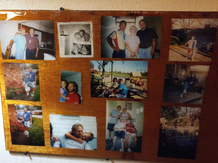 Had these old family photos laying around so I got them to a piece of panel and poured epoxy on it. To left to right best friend and me joined the war together, me in a high chair back before dirt was invented, and my brother mother and me and various shots off my sons I named the youngest pagan and the oldest heathen. This is like having to watch someone's vacation movies or slides. Huh y'all