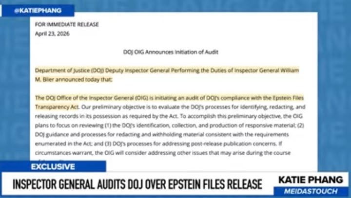 The Office of the Inspector General just announced it’s going to be auditing the DOJ for its compliance with the Epstein Files Transparency Act. Katie Phang on what to expect and why former AG, Pamela Jo, was the biggest violator of the law.