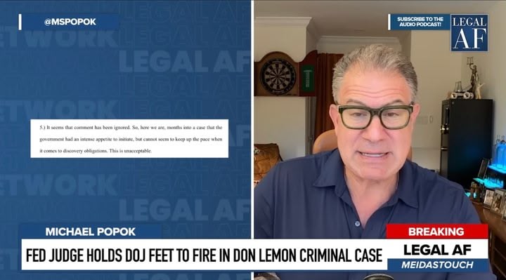 In breaking news, a federal judge in Minnesota in a new order has declared as "unacceptable" the DOJ's delaying tactics in the criminal case against journalist Don Lemon, Georgia Fort and 37 other people for the peaceful first amendment protest in a St. Paul church in January.